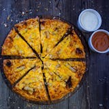 Fox's pizza dough topped with our delicious buffalo wing sauce, diced chicken breast, Fox's cheese blend & cheddar cheese. Baked & served with a side of ranch.