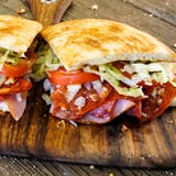 Ham, hard salami, melted Fox's cheese blend, green peppers, onions, lettuce, tomatoes & gourmet Italian dressing.